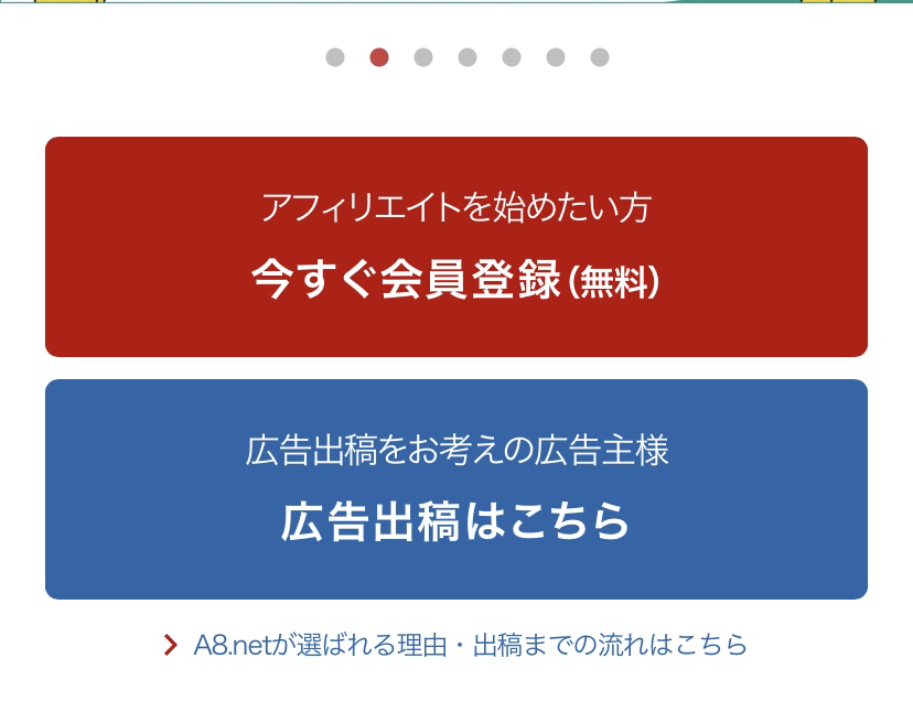 てことでA8.netの登録をしていない方は、以下の公式ページから先に登録しておいてくださいね。ブログなどがない方でも登録は可能ですのでご安心を。